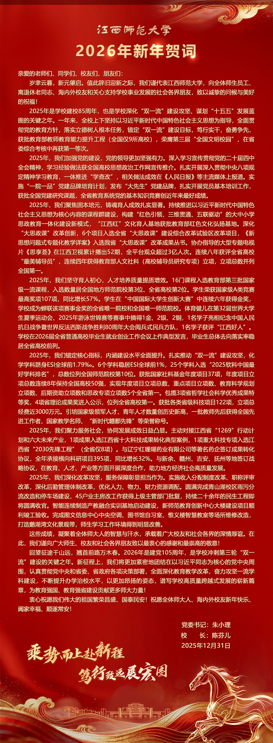 江西师范大学2026年新年贺词