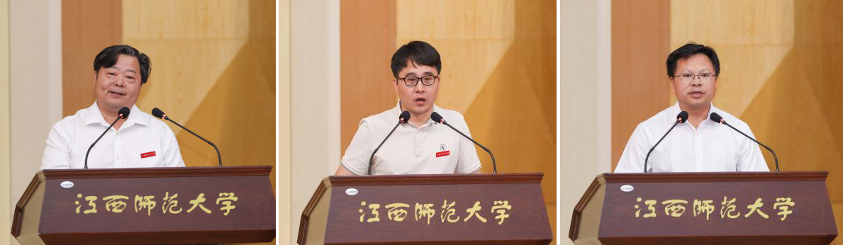 从教30年教师代表、政法学院教师颜三忠分享了育人心得与坚守讲台30载的心路历程;新入职教师代表、化学与材料学院李志伟表达了潜心教研、传承师大优良传统,争做“四有”好老师的决心;校友代表、97级数学与应用数学专业校友、全国模范教师、国家级教学名师、吉安一中副校长刘志乐深情回顾了母校的培育之恩,分享了自己扎根基层一线,传承师大精神,坚守教育初心,潜心育人的经历、感悟。