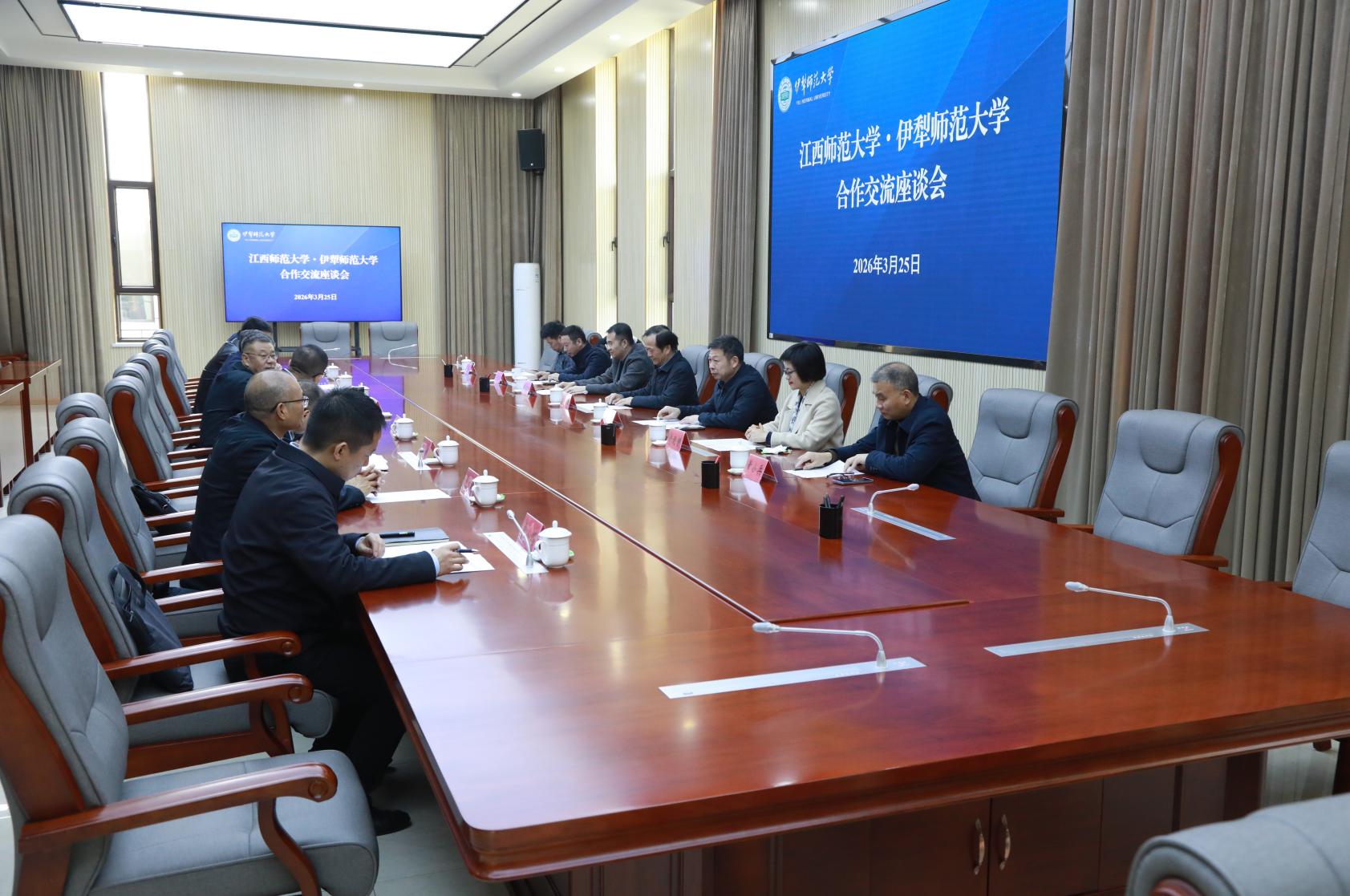 在江西省对口支援新疆工作前方指挥部,朱小理一行受到江西前指党委委员、副总指挥郭卫泉、朱建军,党委委员黄作颖、拱明等的热烈欢迎,并在前指主持召开我校在新疆克州各类援疆干部师生及校友代表座谈会。座谈会上,中组部第十一批援疆专业技术人才、历史文化与旅游学院教师张景谷,赴天山职业技术大学(克州校区)支教的文学院教师王勤、心理学院教师沈友田,部分对口支援克州教育的校友代表,研究生支教团成员等纷纷畅谈了他们的援疆经历和在疆感悟。朱小理认真听取发言并与他们亲切交谈,详细询问大家的工作生活情况,代表学校向全体援疆师生及在疆校友致以诚挚问候,高度赞扬他们扎根边疆、服务西部的家国情怀与使命担当,勉励他们要认真学习领会习近平总书记重要讲话精神,完整准确全面贯彻新时代党的治疆方略,在各自的岗位上做出新的更大贡献,并欢迎在疆校友常回母校看看。