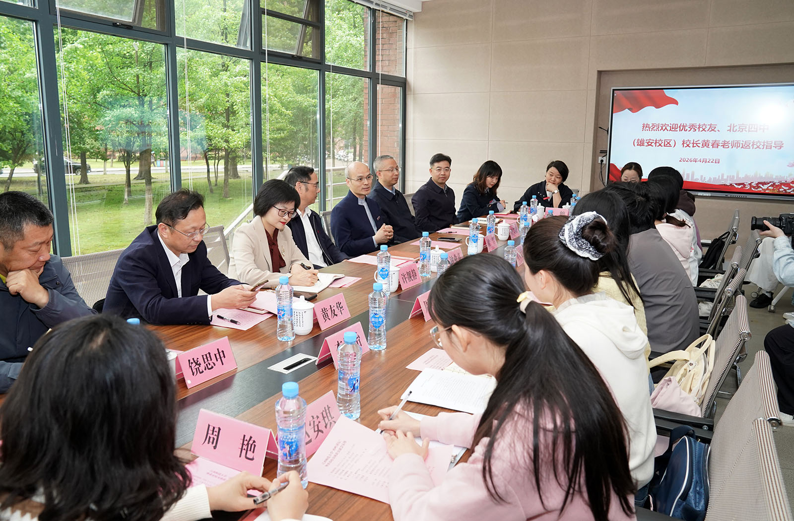 黄春介绍了北京四中雄安校区的办学情况,回顾了在母校求学的难忘时光,表示将一如既往关注和支持母校发展,积极为学校建设贡献力量。