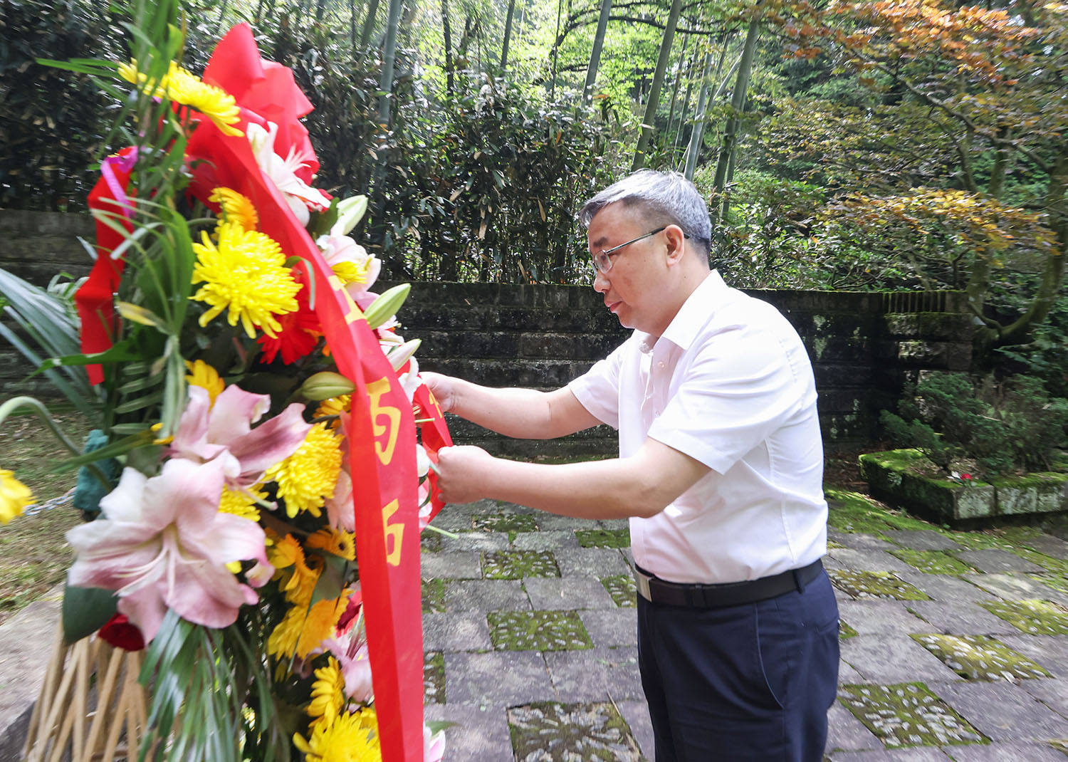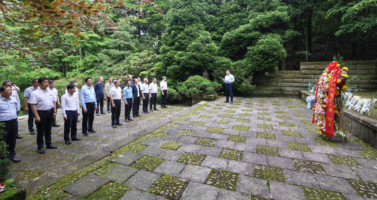 水杉苍郁,修竹掩映,在庐山植物园内,坐落在青山翠谷中的胡先骕墓庄重肃穆。5月23日上午,校党政领导班子、师生代表一早驱车赴庐山拜谒胡先骕墓,在江西中国科学院庐山植物园党委书记、副主任魏宗贤的陪同下,与庐山植物园工作人员一起,为胡先骕墓敬献花篮和花束。